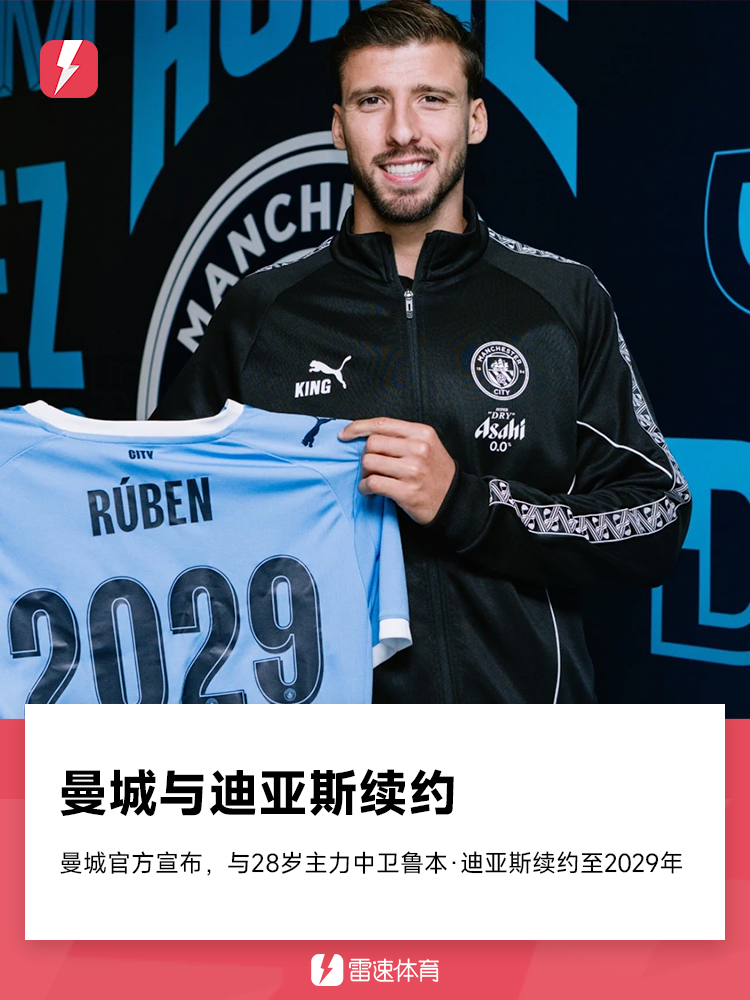 云开体育-官方:曼城与中卫鲁本·迪亚斯续约至2029年